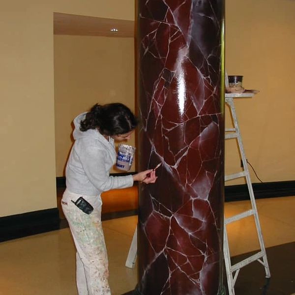 Explore Julie Cravens' journey in art restoration, which began in Florida and took her through Boston, New York, and Washington DC. Specializing in transforming surfaces to resemble metal, marble, wood, and Venetian plaster, Julie's expertise is marked by precision and dedication.